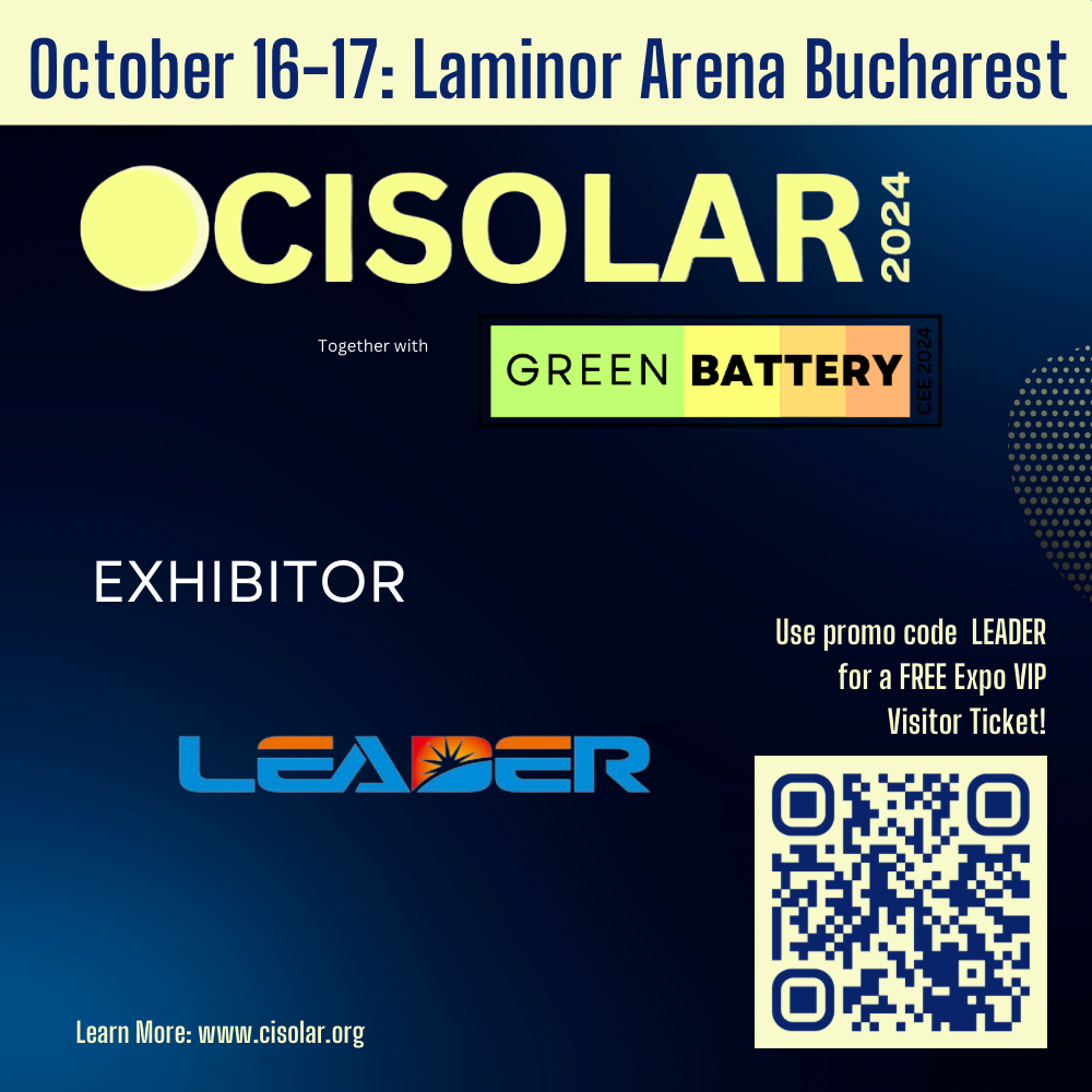 Folosiți codul promoțional LEADER pentru un bilet GRATUIT pentru vizitatori VIP Expo și descoperiți cum Leader Group modelează viitorul tehnologiei energiei solare.